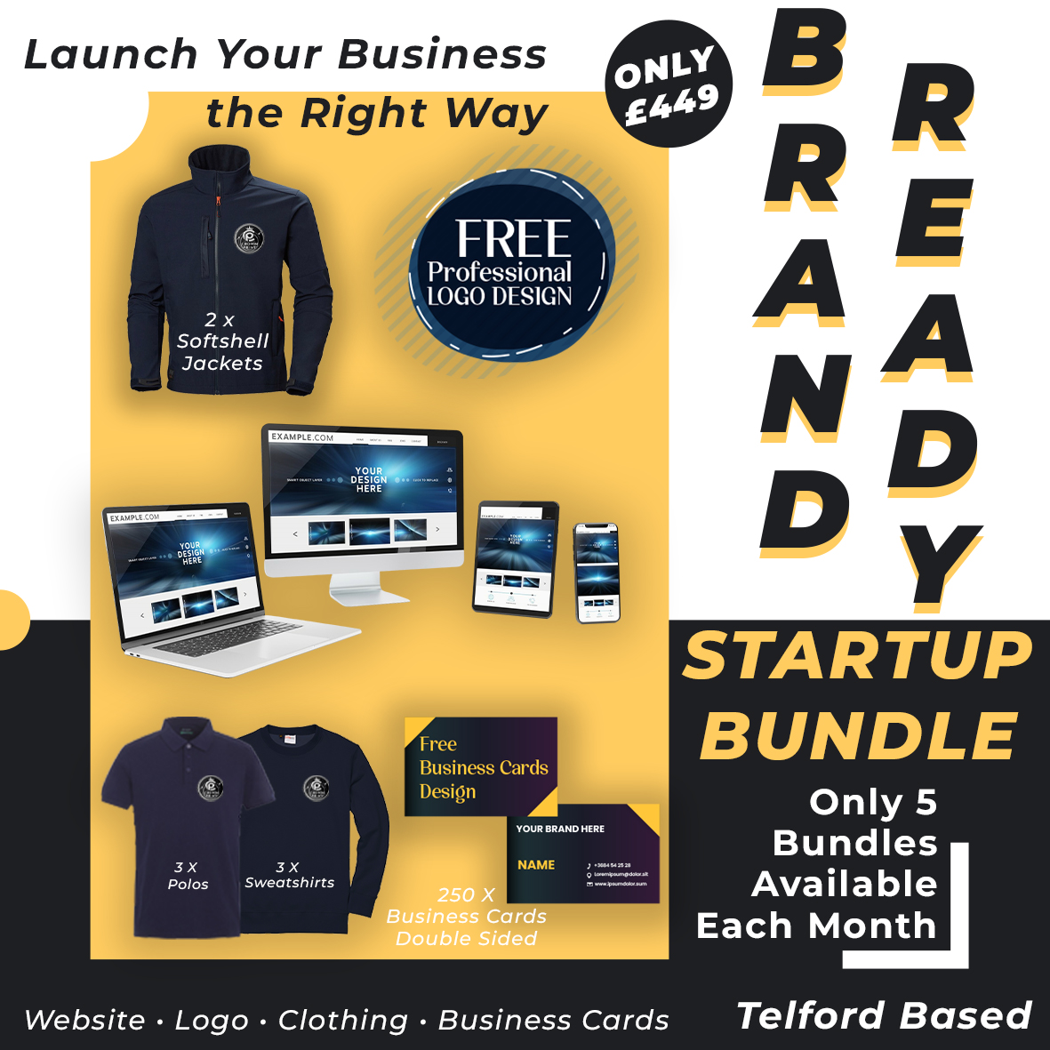 The Brand Ready Startup Bundle in Telford is designed for new businesses that want to launch professionally from day one. Our all-in-one startup package includes everything you need to build a strong brand presence — without dealing with multiple suppliers.